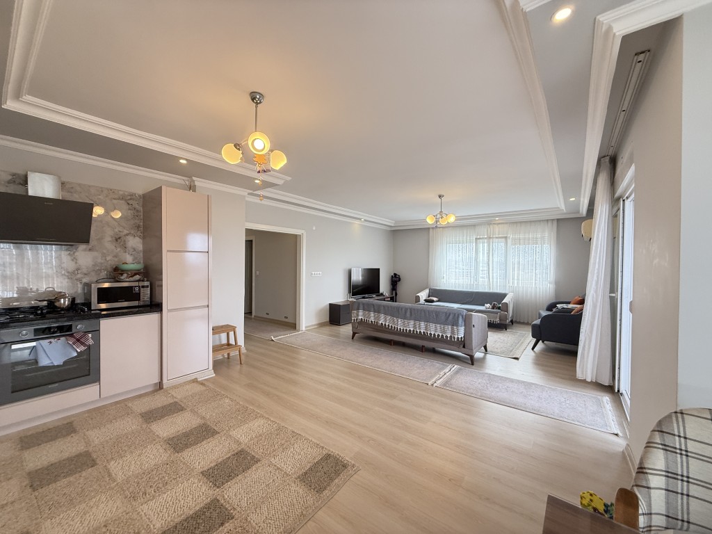 A Prestigious and Comfortable Living Space Located in the highly sought-after Cikcilli area of Alanya, this spacious 125 sqm apartment in the prestigious Galaxy complex offers a comfortable and elegant lifestyle. Situated on the 5th floor of a well-established 9-story building, this move-in-ready, fully furnished 2+1 property features two modern bathrooms and two large balconies perfect for enjoying the Mediterranean climate. Equipped with air conditioning for year-round comfort, the apartment is conveniently located just 1 km away from the stunning blue waters of the sea.